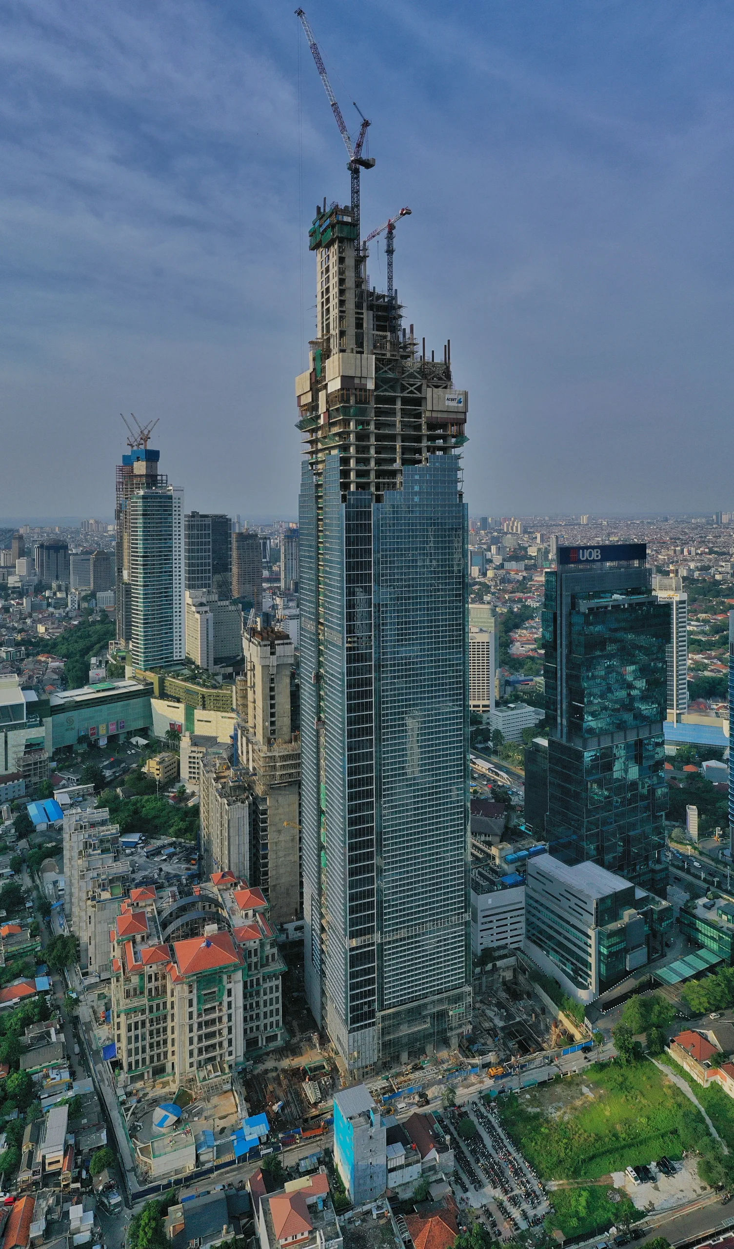 Berdiri di atas lahan seluas 5,7 Ha di pusat Jakarta, Thamrin Nine adalah kompleks terpadu (perkantoran, retail, residensial, hingga hotel) berkelas dunia yang memegang rekor sebagai gedung tertinggi di Indonesia. Dibangun sejak 2012 oleh Putra Gaya Wahana dengan kontraktor Acset Indonusa dan Total Bangun Persada, Solusi Bangun Beton dipercaya sebagai supplier tunggal dengan fasilitas onsite batching plant.